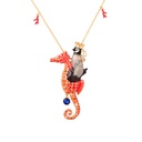 - Orange Seahorse and Penguin Enamel Pendant Necklace Jewelry Gift