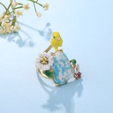 - Yellow Parrot Bird And Daisy Stone Enamel Adjustable Ring Jewelry Gift