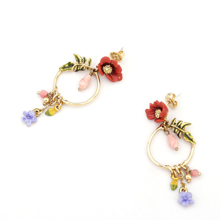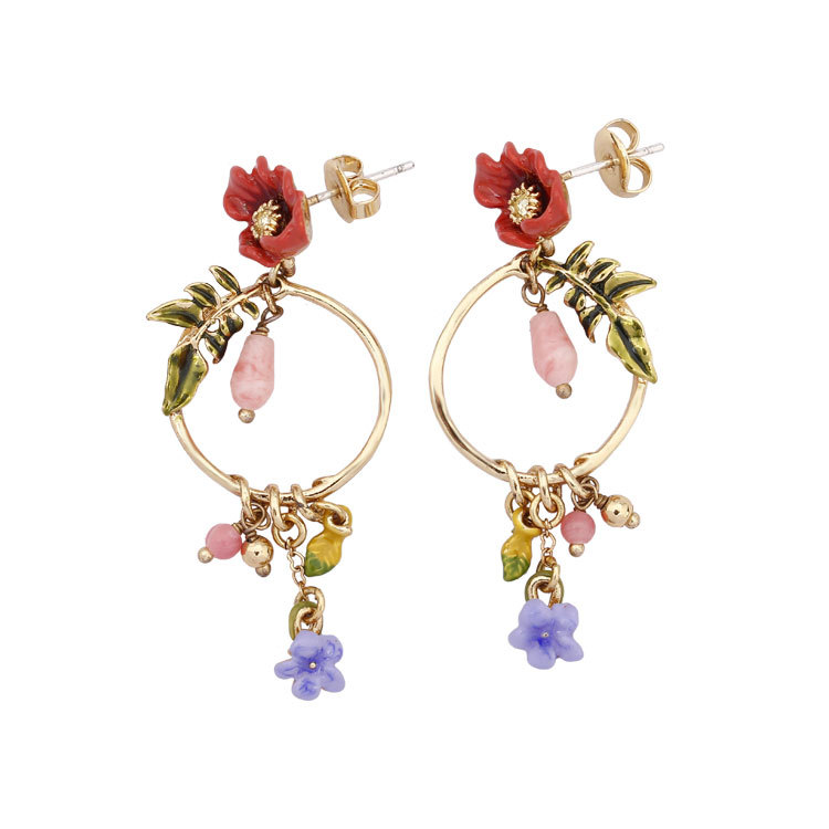 - Flower Circle Pendant Beads Enamel Stud Earrings
