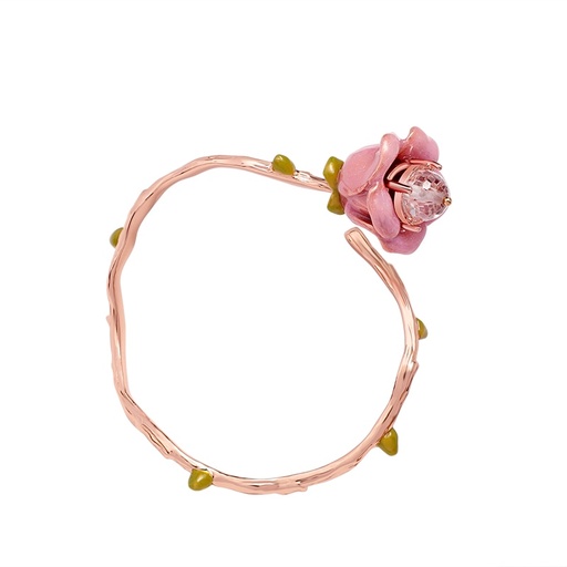 - Pink Flower Ladybug And Stone Enamel Bead Bracelet