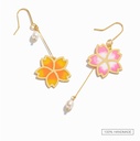 - Cherry Blossom Flower Asymmetrical Enamel Hook Earrings