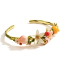 - Fruit Peach And Orange Flower Enamel Bangle Cuff Bracelet