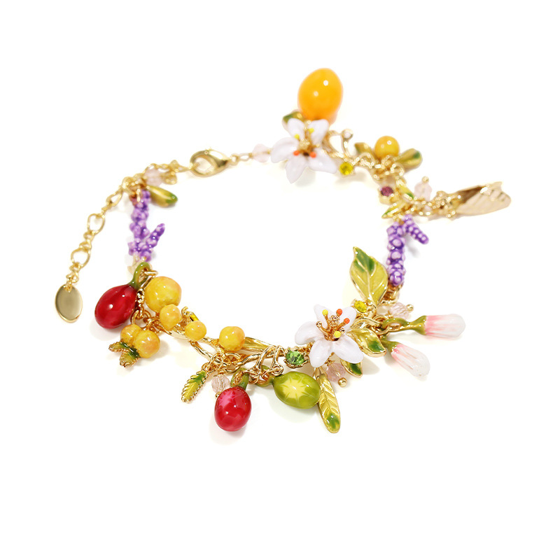 - Orange Blossom Lavender Flower Lemon Fruit Enamel Charm Bracelet