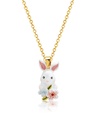 - Cute Rabbit Bunny And Pink Flower Enamel Pendant Necklace Jewelry Gift