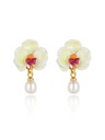 - Yellow Orange Red Butterfly Orchid Flower Pearl Enamel Stud Earrings