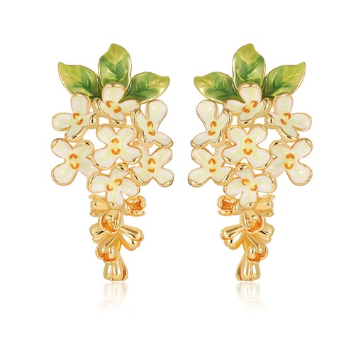 Lily of the Valley White Flower Blossom Enamel Dangle Earrings