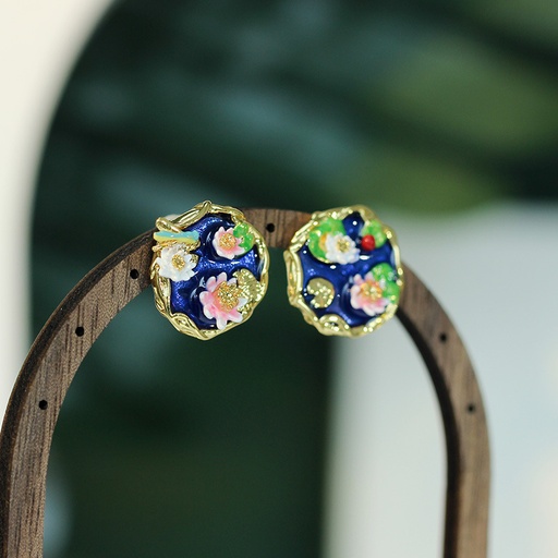 Cherry Blossom Flower C Shape Enamel Earrings Jewelry Gift