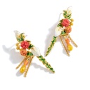 - Orange Red Flower Bud Tassel And Green Leaf Enamel Dangle Earrings Jewelry Gift