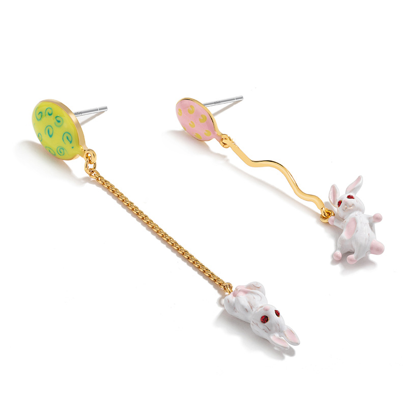 - Rabbit Bunny Balloon Asymmetrical Enamel Earrings
