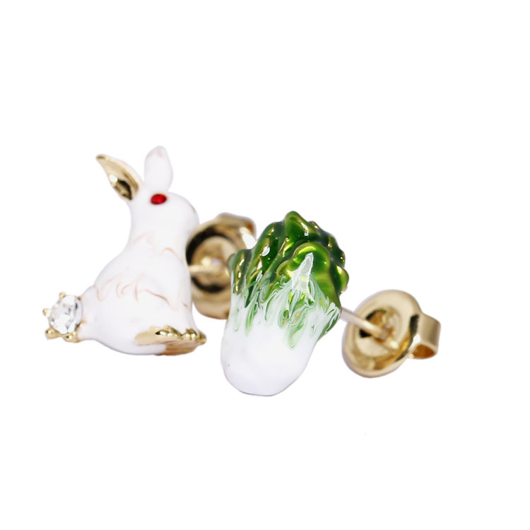 Rabbit Carrot Chinese Cabbage Enamel Stud Earrings Jewelry Gift